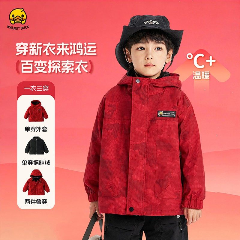 小黄鸭联名儿童三合一男童冲锋衣女童春秋防风防水开衫新款外套爆
