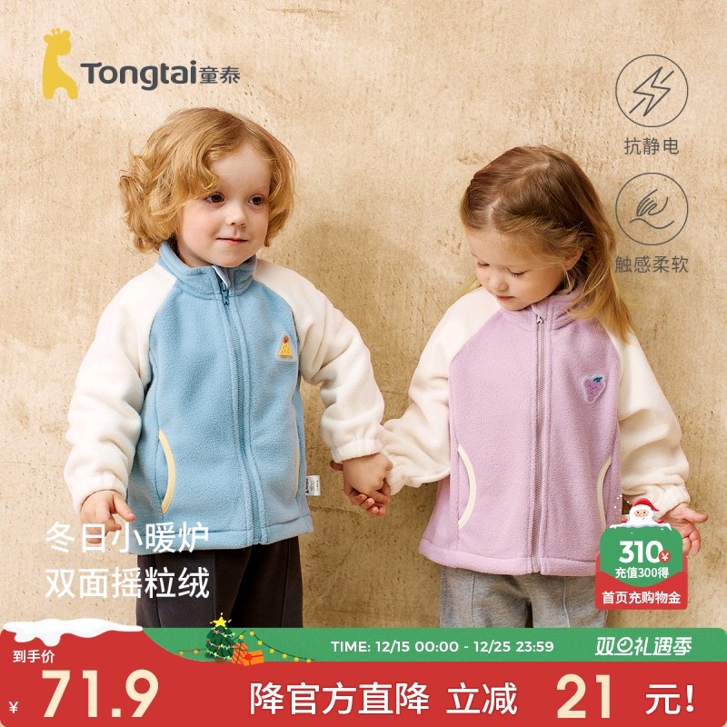 童泰宝宝外套春秋婴儿衣服儿童休闲外出摇粒绒上衣男女童立领开衫