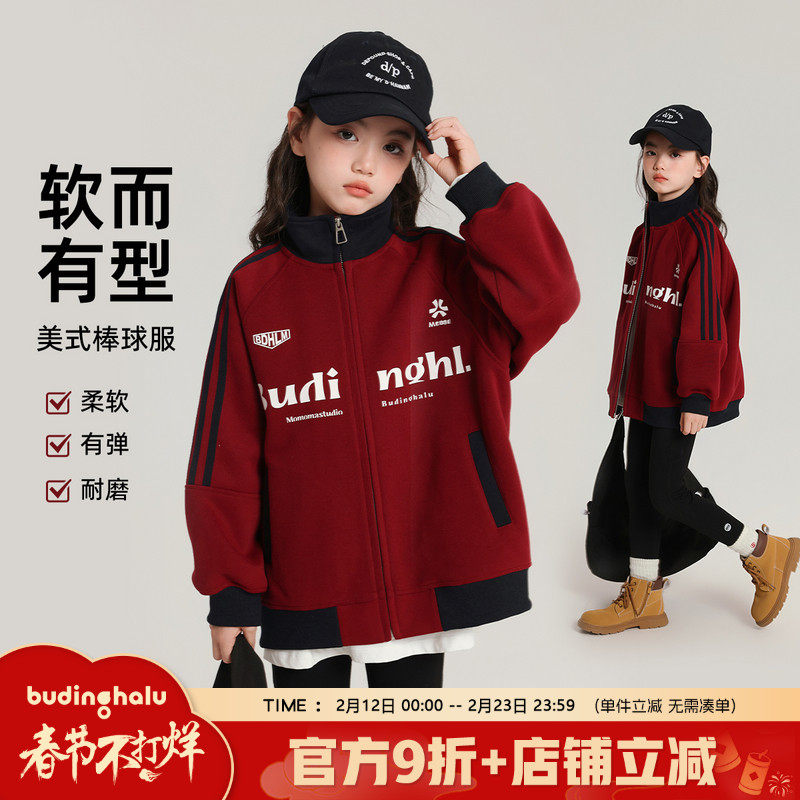 布丁哈鲁童装秋装女童休闲外套2026春秋新款儿童美式撞色棒球服