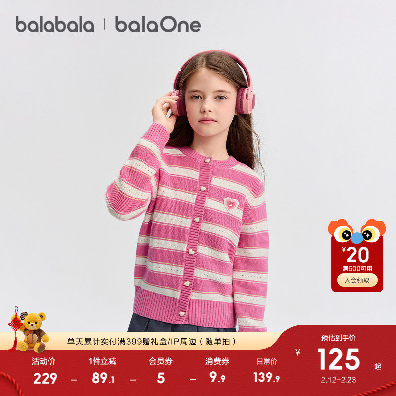 巴拉巴拉童装儿童毛衣女童2026春秋季新款针织开衫小香风甜美外套