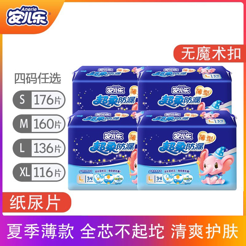 安儿乐超柔防漏婴儿纸尿片L136片(L34片*4包) 宝宝尿不湿SMXL大码