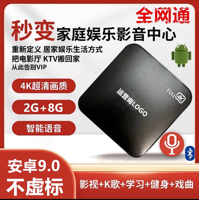 安卓9.0版本2G+8G高清家用电视网络机顶盒蓝牙语音遥控手机投屏