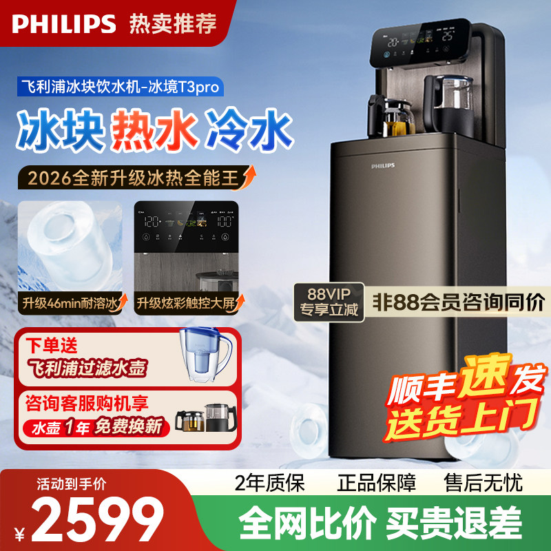 飞利浦冰块茶吧机2026新款家用智能下置水桶高端立式饮水机冰境T3