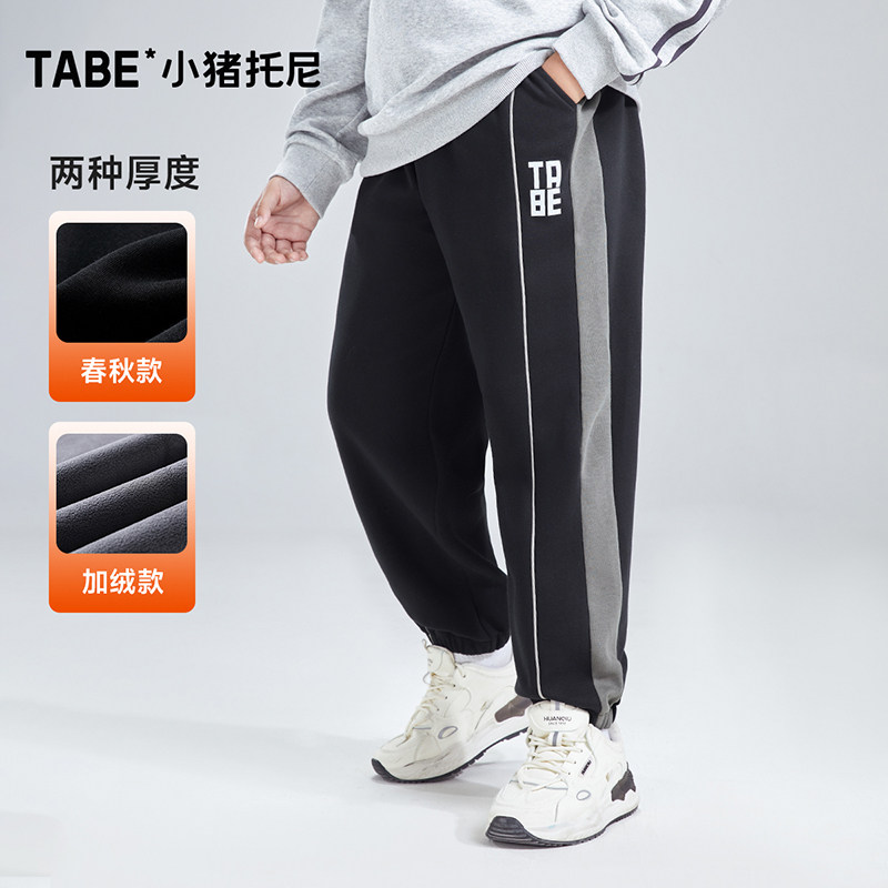 小猪托尼胖童撞色裤子男大童长裤加肥加大运动束脚裤长裤秋款宽松