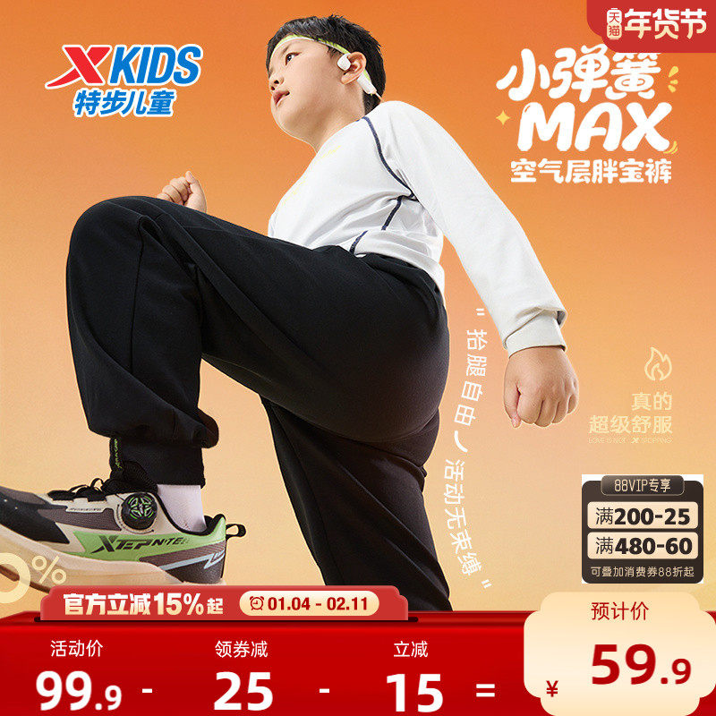 胖宝裤|特步童装儿童加肥加大运动裤秋冬款男童加绒裤子大童卫裤