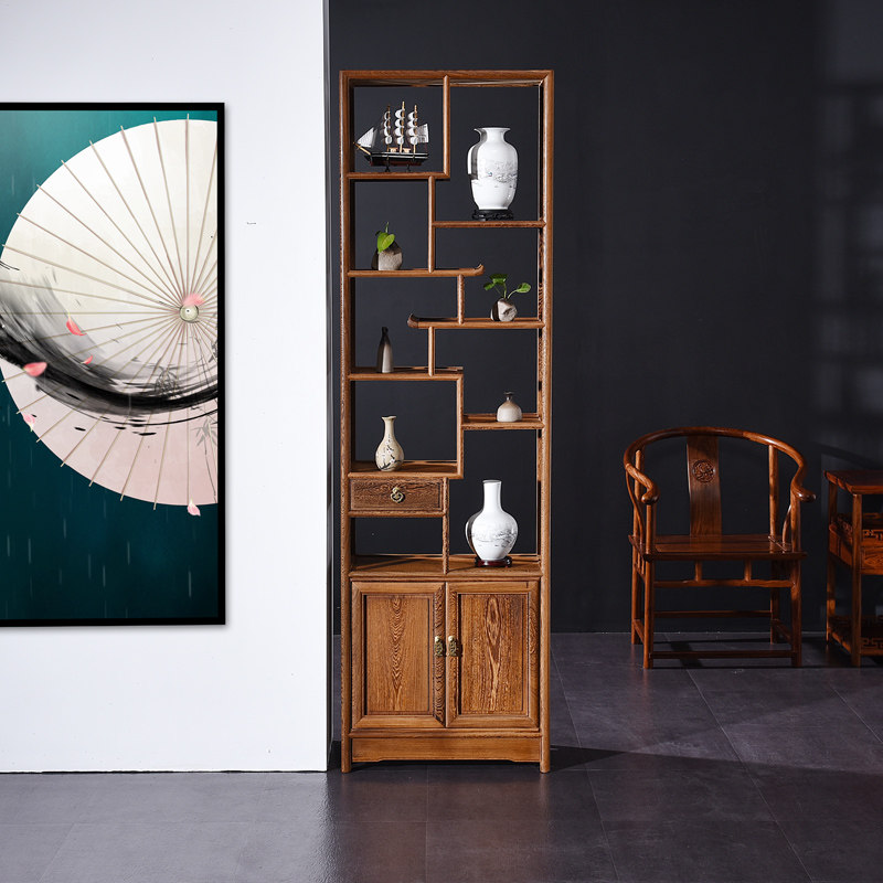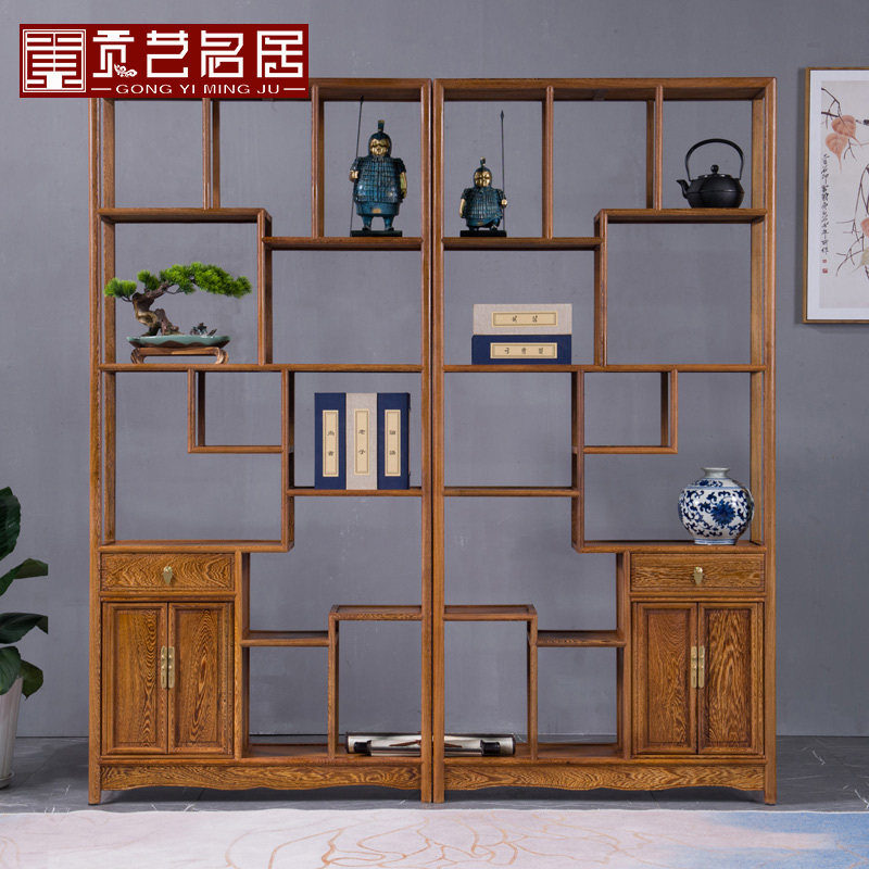 鸡翅木博古架实木新中式茶室多宝阁红木置物架仿古客厅隔断古董架