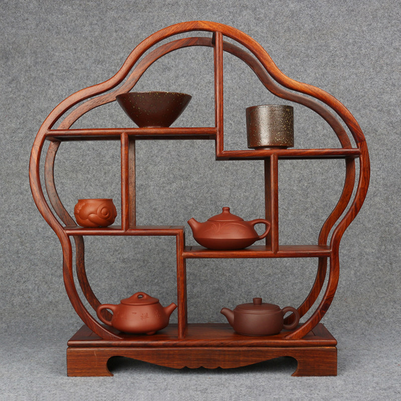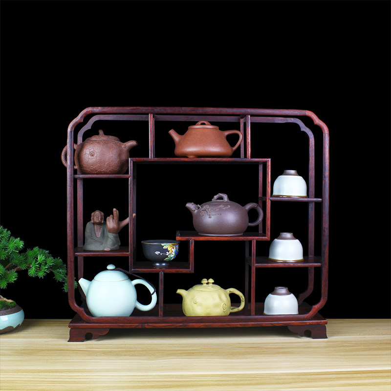 鸡翅木小型博古架 实木小多宝格 茶杯茶壶摆件架子 奇石头古董架