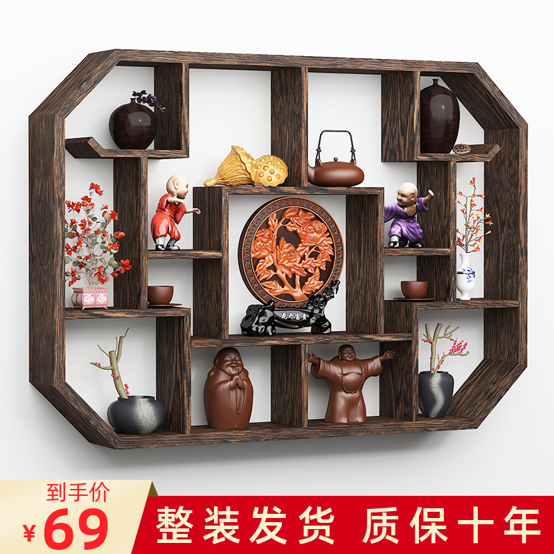 博古架实木中式壁挂式多宝阁挂墙茶壶架子摆架置物架简约现代古董