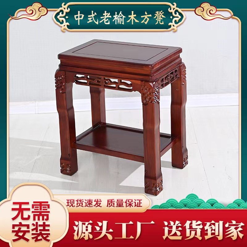 实木花架榆木盆景摆件仿古家用鱼缸架中式奇石架古董架方形客厅架