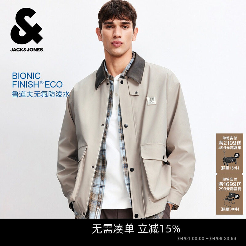 【巴恩风防泼水夹克】杰克琼斯男士外套春季宽松翻领工装上衣男装
