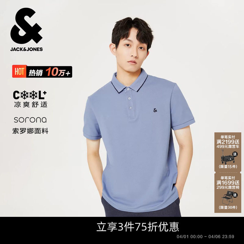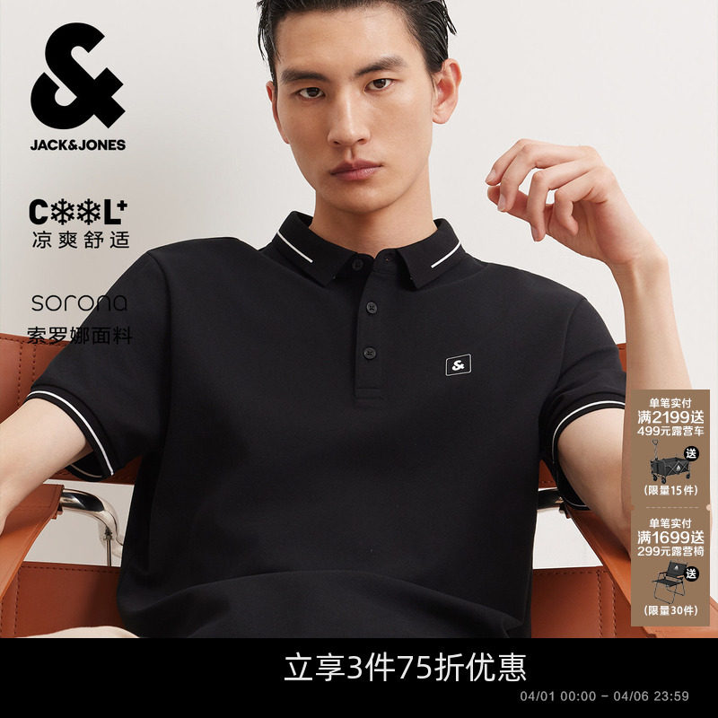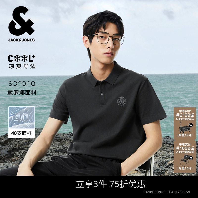 [凉感]杰克琼斯男装polo衫春夏季新款商务休闲刺绣翻领短袖上衣