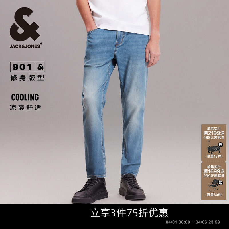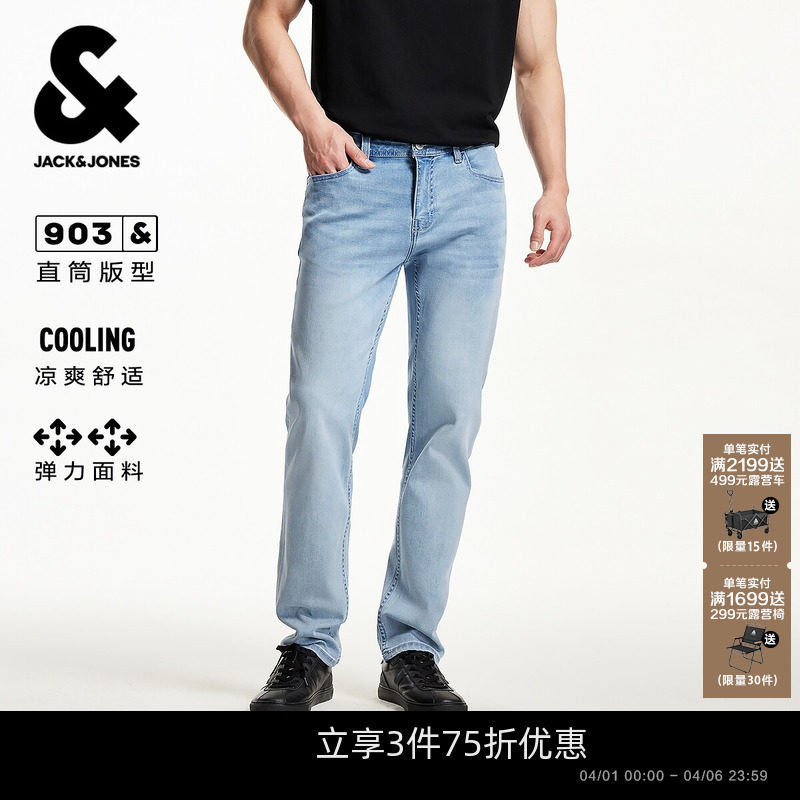 【李佳琦直播间】杰克琼斯凉感903直筒复古猫须水洗男装牛仔裤