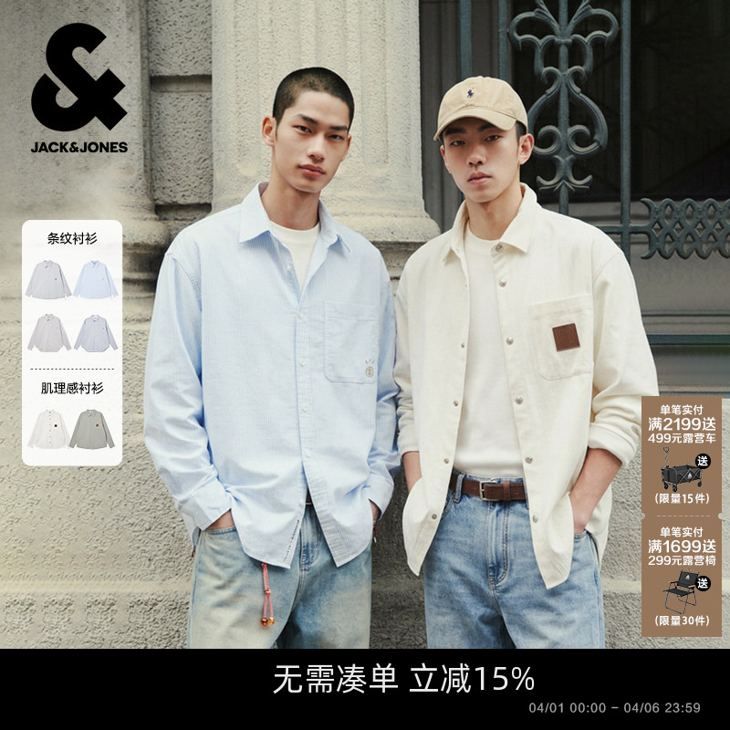 【肌理感衬衫男款】杰克琼斯衬衣外套26年春新款休闲宽松上衣男装