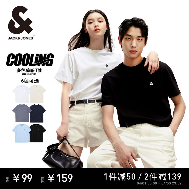 【凉感】杰克琼斯男装春夏T恤上衣舒适百搭多色LOGO刺绣圆领短袖