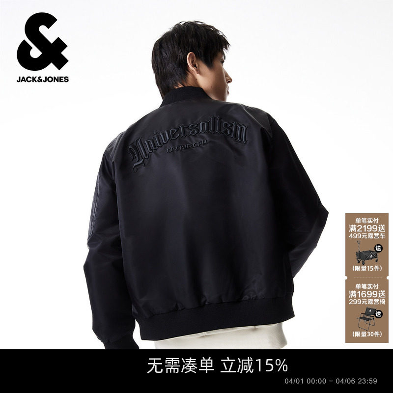 杰克琼斯男飞行员夹克男款2026年春季美式复古棒球服外套上衣男装