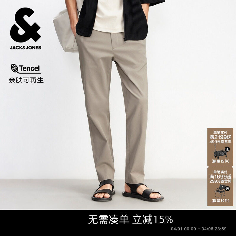 [天丝]杰克琼斯男装春季新款商务通勤锥形直筒休闲裤男款腰长裤子