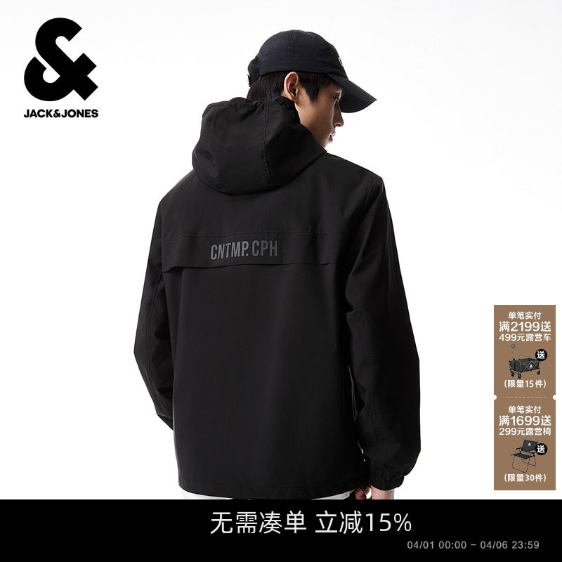 杰克琼斯男装2026年春季新款户外连帽夹克外套上衣男装LOGO印花