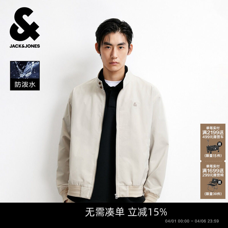 【凉感防泼水】杰克琼斯男装春夏新款宽松刺绣立领外套防晒服上衣