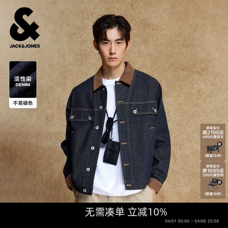 杰克琼斯原色牛仔外套男款春季新款复古潮流翻领休闲夹克上衣男装