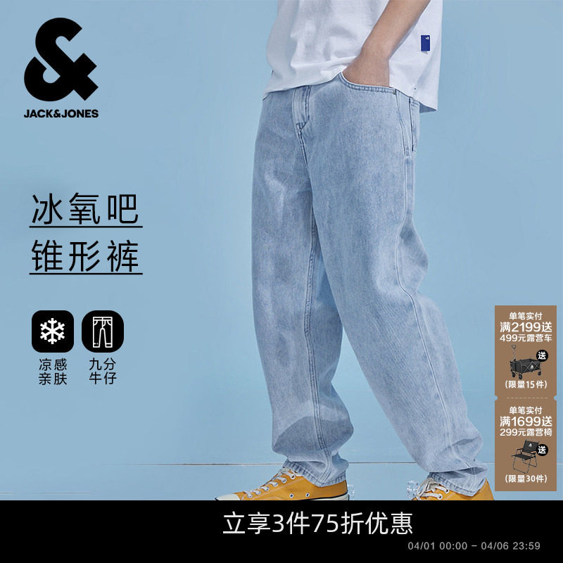 [凉感]905杰克琼斯春夏男装美式水洗浅蓝宽松锥形牛仔裤长裤子