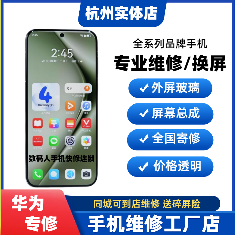 杭州华为手机维修P30/40/50E/60Pro/Pura70ultra换外屏幕玻璃总成