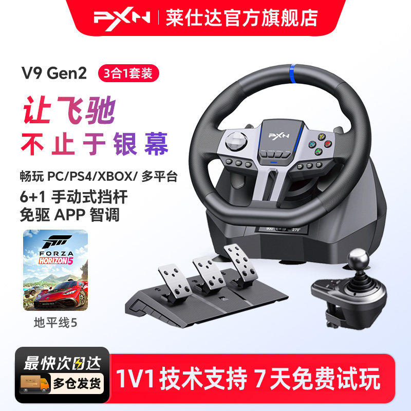 PXN莱仕达V9 Gen2二代赛车游戏方向盘900度汽车模拟器PS4电脑pc学车开车模拟驾驶switch欧洲卡车地平线5欧卡2