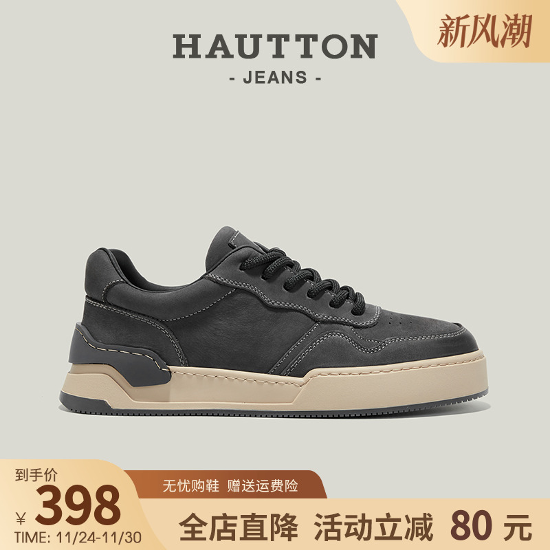 HauttonJeans板鞋男2025冬季新款男鞋休闲皮鞋男士真皮潮流运动鞋