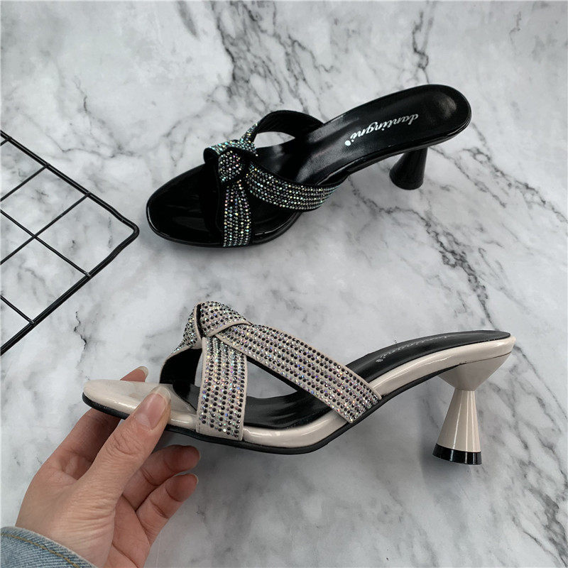2025新品夏季高跟女凉鞋时尚水钻气质女凉拖外出穿拖鞋女一字凉鞋