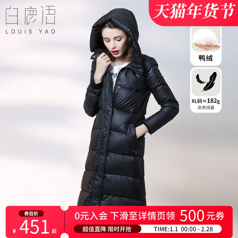 鸭鸭羽绒服女2020年秋冬新品过膝中长款连帽时尚加厚保暖鸭绒外套