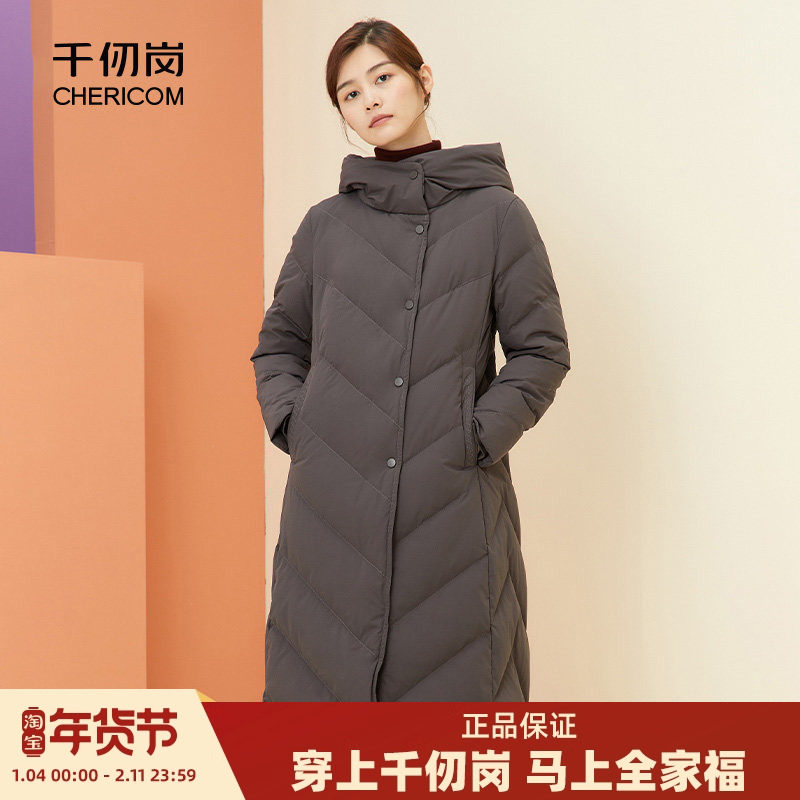 千仞岗2023秋冬女士连帽过膝长款连帽外套加厚保暖反季羽绒服