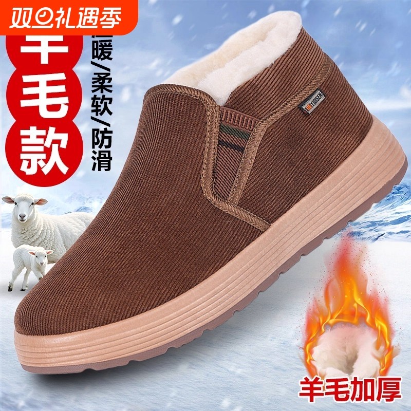冬季老北京布鞋男款官方旗舰店2025加绒保暖老人防滑羊毛加厚棉鞋