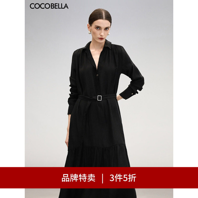 【3件5折】COCOBELLA肌理感褶皱莱赛尔连衣裙女长袖衬衫裙FR915-6