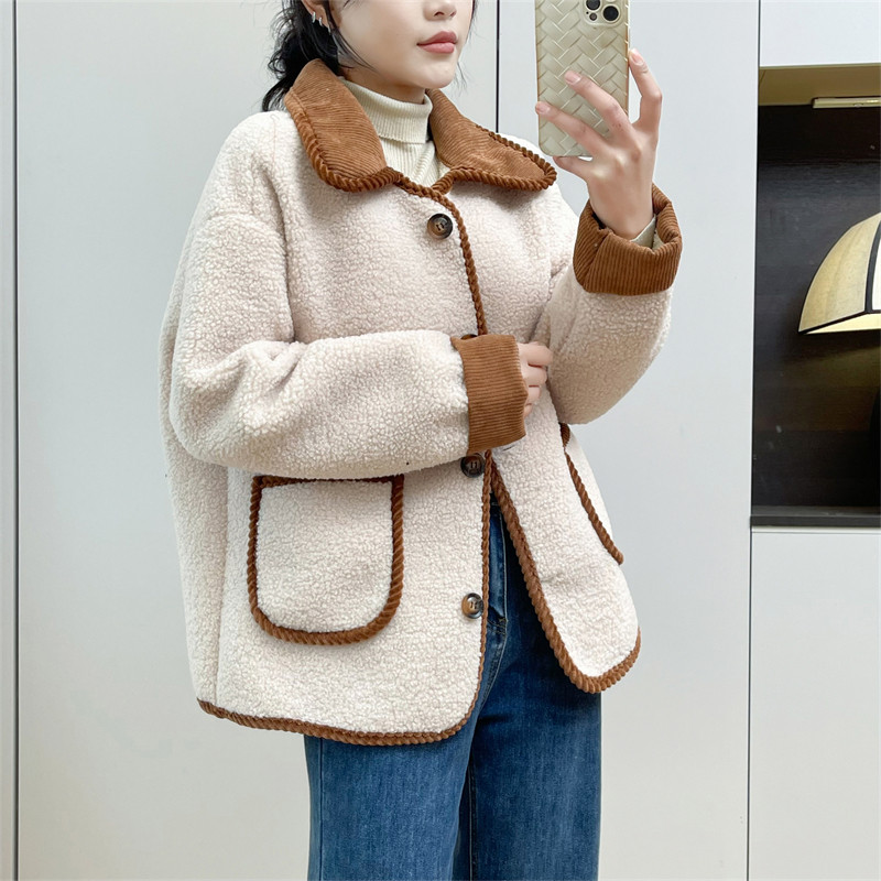 惠衣阁冬女长袖衬衫领羊羔毛外套加绒外套韩版休闲保暖羔羔毛外套