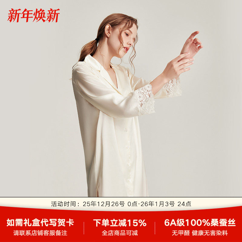 2025年新款真丝睡衣女长袖衬衫睡裙桑蚕丝丝绸家居服蕾丝高级感