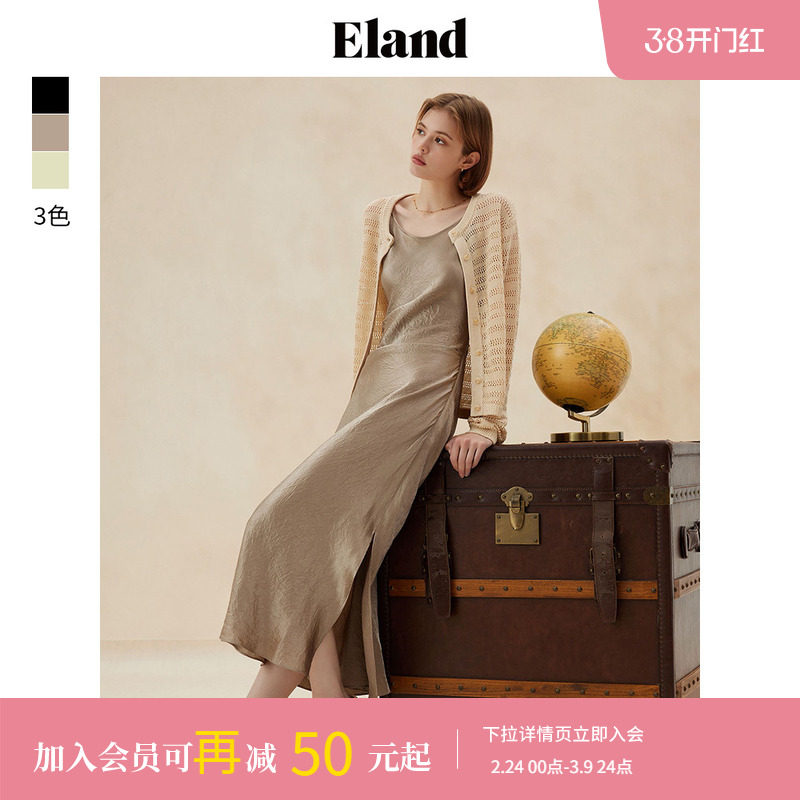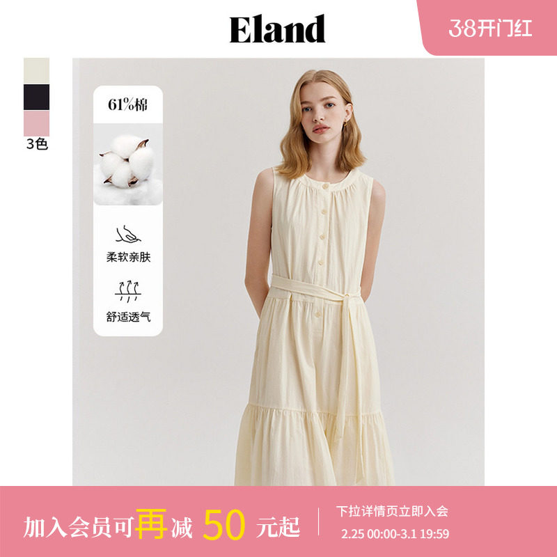 【莱赛尔】Eland衣恋吊带连衣裙女纯色高腰A字蛋糕长裙夏季
