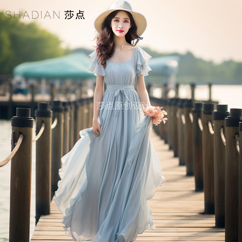 - 雪纺海边渡假沙滩裙