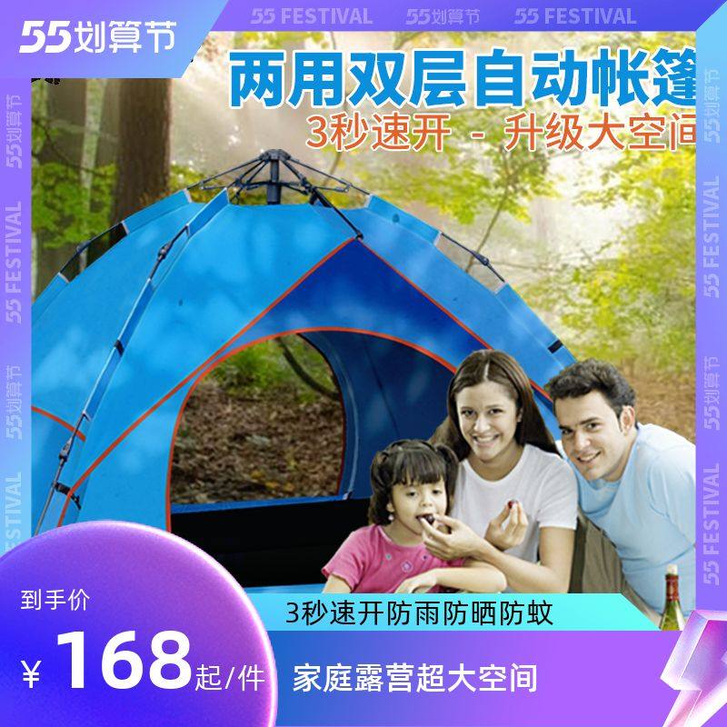 全自动涂胶防晒帐篷户外露营公园便携折叠双层帐篷防暴雨旅行装备