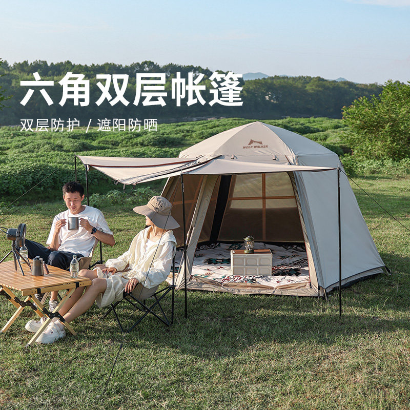 WOLFWALKER狼行者六角双层帐篷户外露营自动便携折叠黑胶加厚防雨