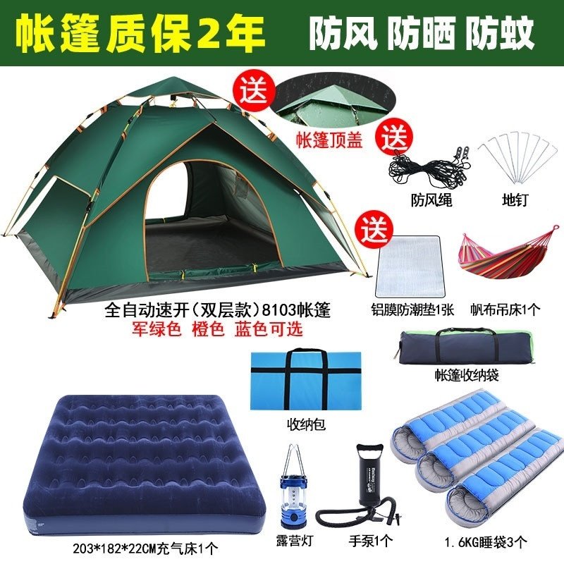 帐篷户外野营过夜便携式可折叠双层加厚露营装备全套全自动室内外