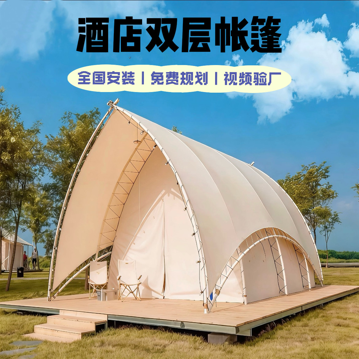 轻奢露营酒店双层帐篷民宿户外景区住宿防水防晒大型网红帆船帐篷