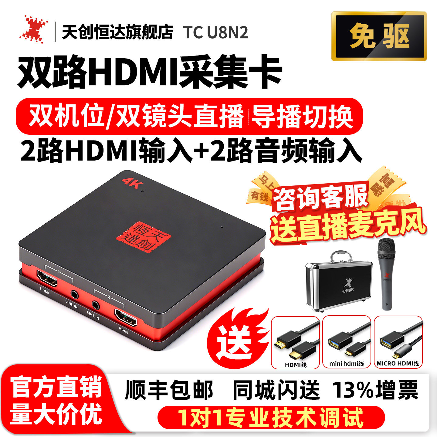 天创恒达TC-U8N2 双路采集卡 4K 双机位直播专用 2路hdmi视频卡盒