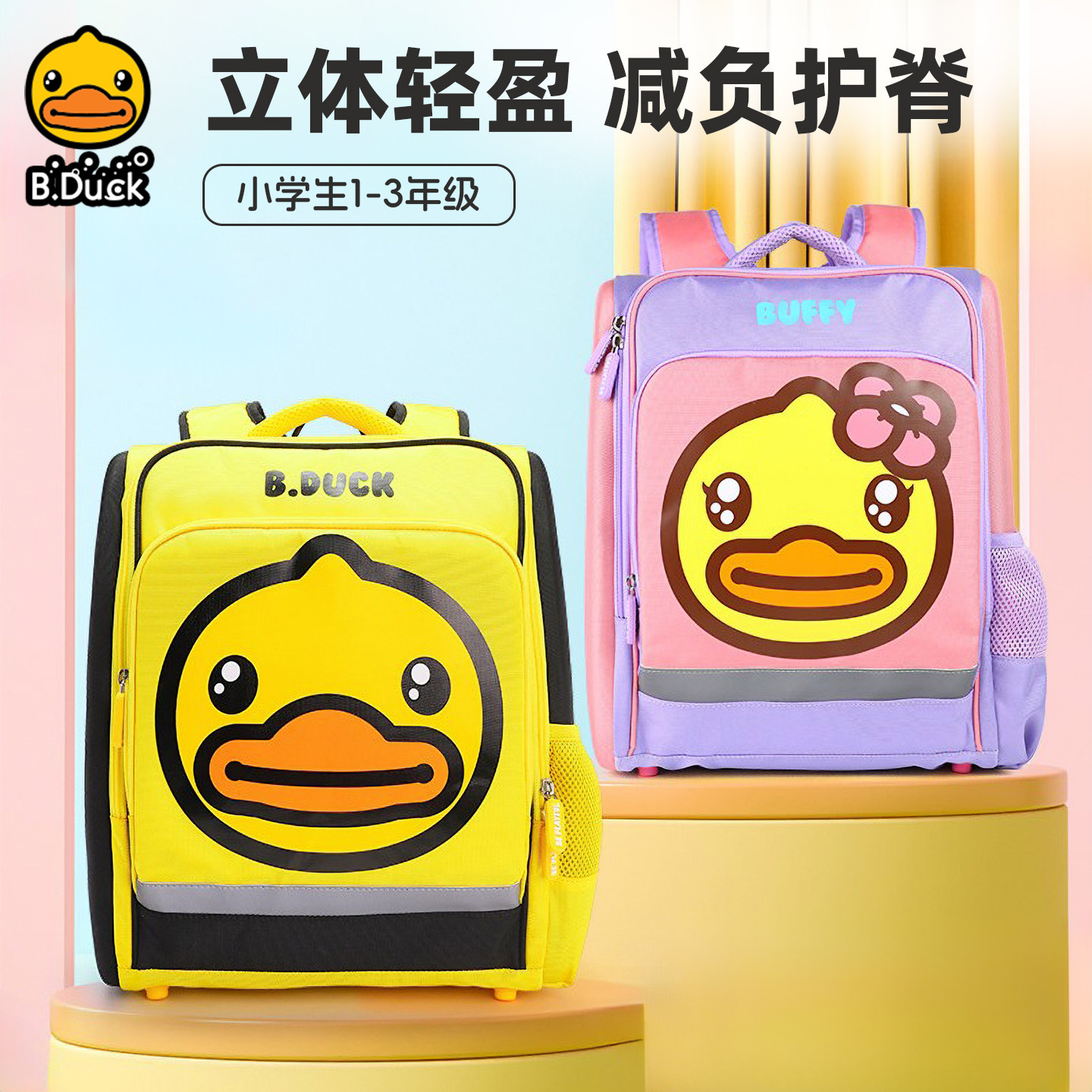 B.Duck小黄鸭儿童书包小学生1-3年级可爱卡通立体减负护脊男女童