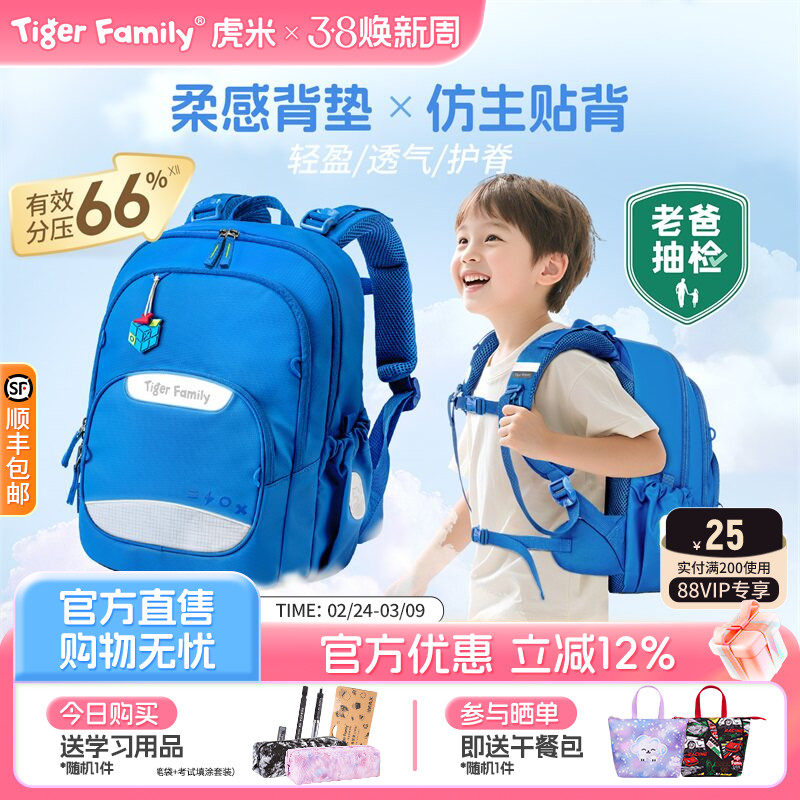 tigerfamily虎米护脊减负书包小学生1-3-5年级儿童男女孩双肩背包