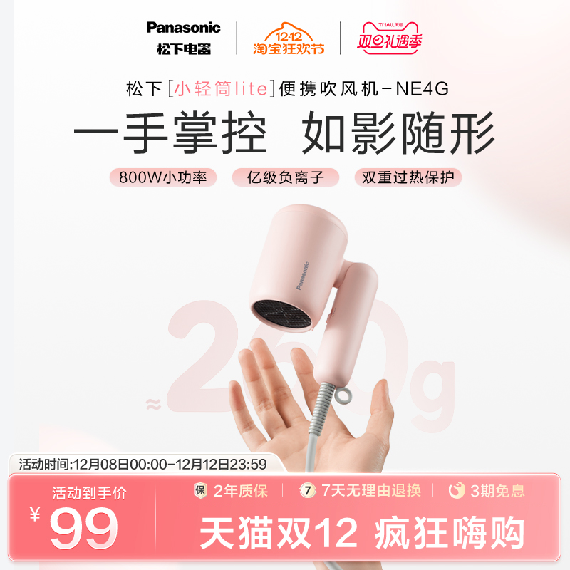 【新品】松下吹风机负离子800W电吹风宿舍学生用小轻筒lite-NE4G