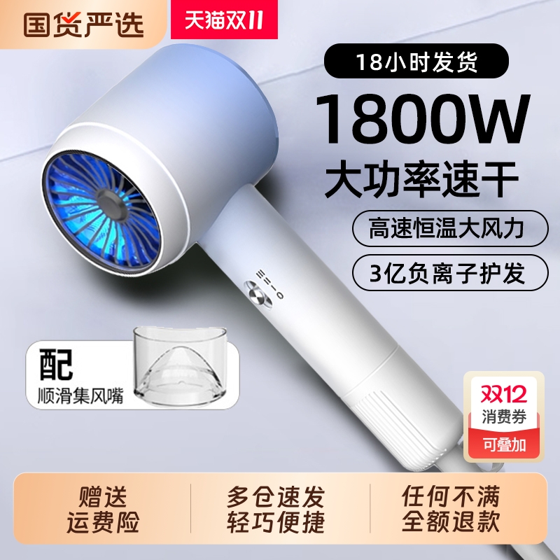 电吹风机家用负离子护发静音宿舍800W学生用速干强力吹风筒好评