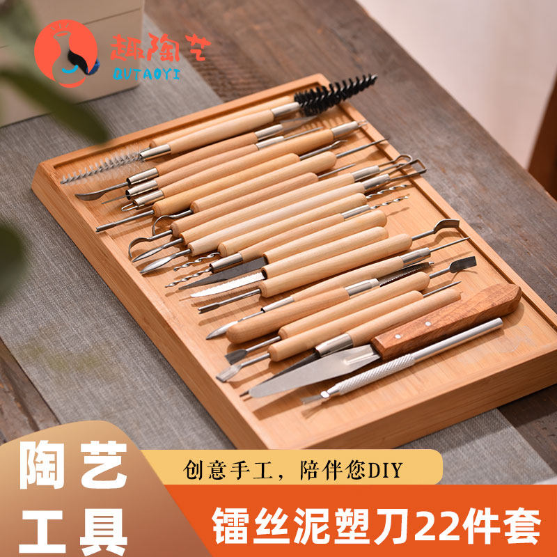 陶艺镭丝工具22件套精雕油泥软陶泥塑刀面塑肌理刷粘土diy塑形