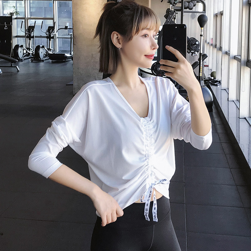 性感透气长袖T恤外穿网红速干衣瑜伽服宽松运动上衣女跑步健身衣