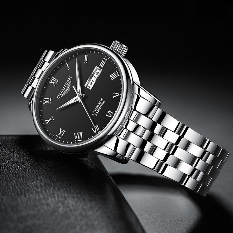正品冠琴手表男士防水机械表全自动钢带镂空潮夜光品牌商务男腕表