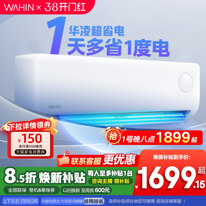【纯铜管】华凌空调超省电大1.5匹35HA1Ⅲ-P新一级能效变频壁挂