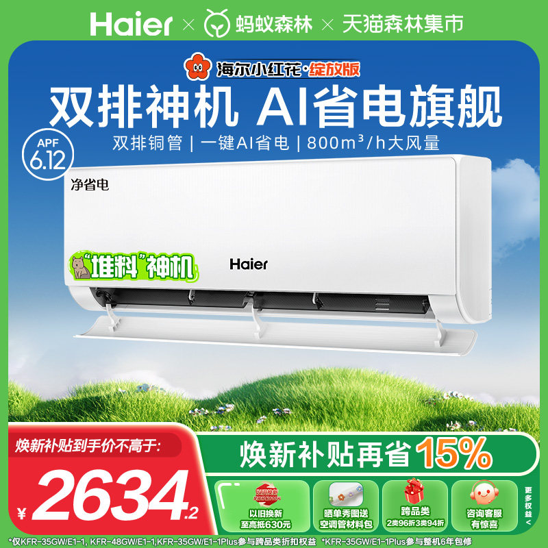【纯铜管】海尔空调1.5匹1匹家用一级变频冷暖挂机净省电E1旗舰店